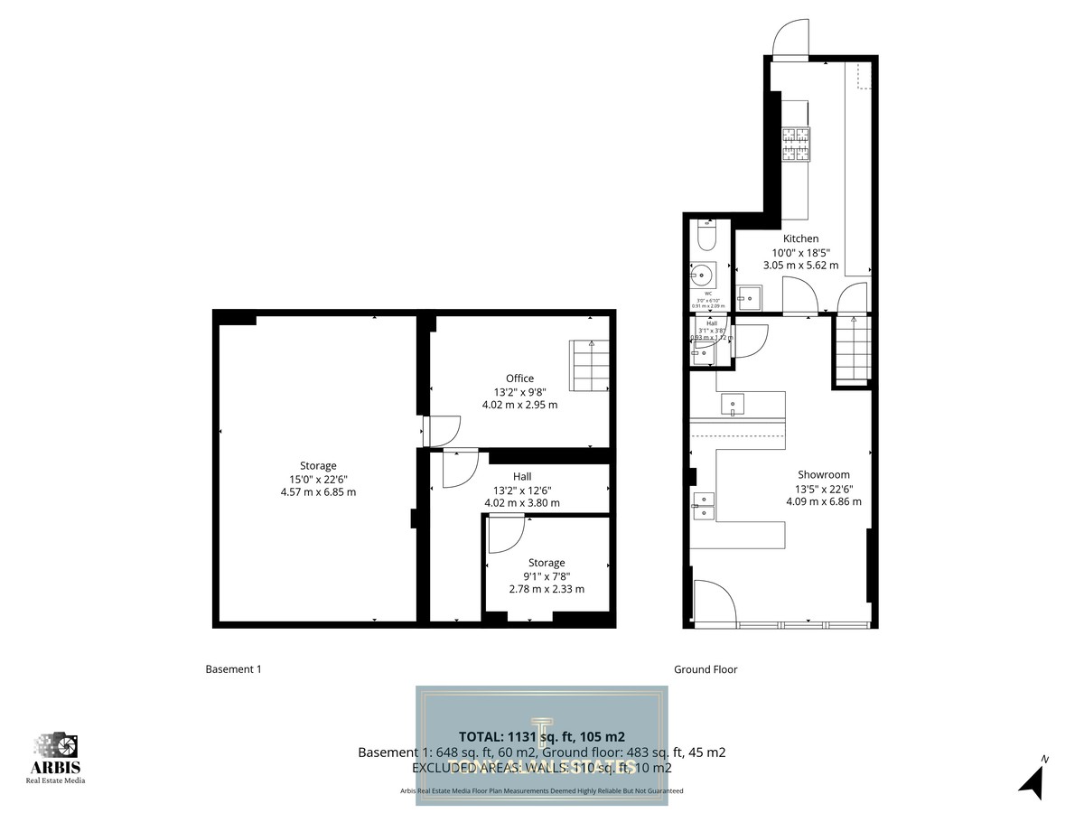 The property benefits from a floor-to-ceiling glazed frontage, allowing excellent natural light and high visibility from the street. Access to the main service area is secured by electric shutters, providing both convenience and security. The basement offers substantial space with multiple storage areas and a separate office, making it highly versatile for a variety of business operations. The overall layout is flexible, suitable for retail, office, or other commercial uses.