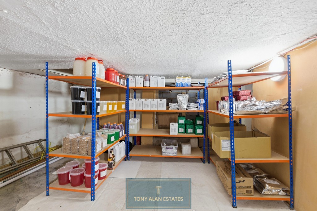 The property occupies both the ground floor and basement and benefits from electric shutters leading directly into the main service area. To the rear of the unit is a storage/preparation room, providing practical back‑of‑house space.